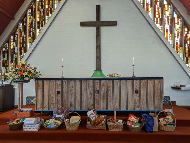 St Barnabas Church, Hadleigh receive donations at their Harvest Festival Service